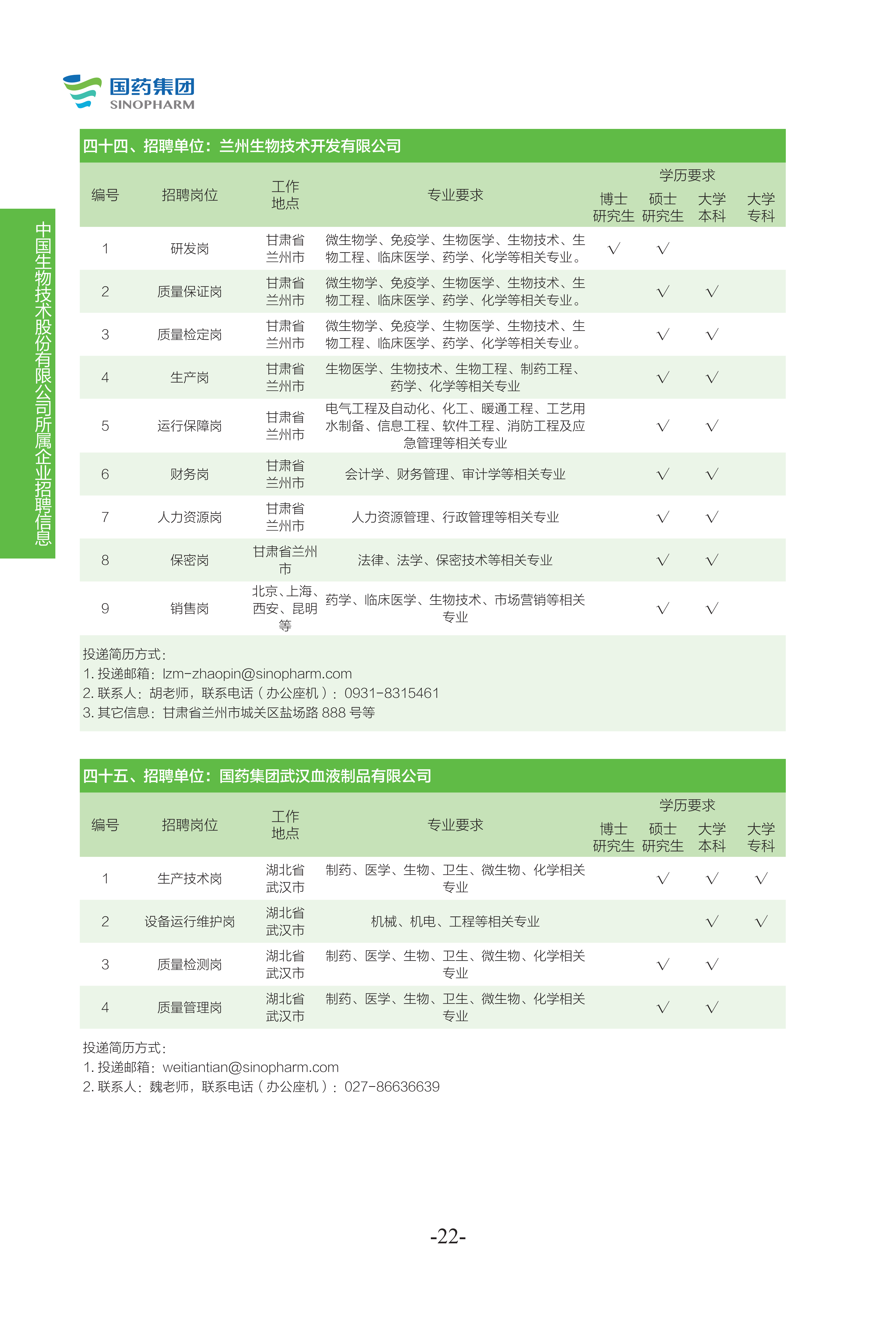 国药集团2022年度校园招聘